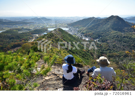 御旅山の山頂で、くつろぐ3人家族(兵庫県姫路市飾磨区妻鹿)※作品コメント欄に撮影位置