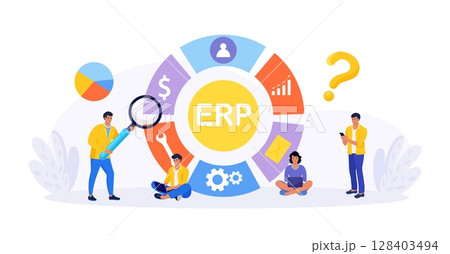ERP Enterprise resource planning, productivity and company enhancement. Business integration, productivity and company enhancement. Business character consulting of financial operation