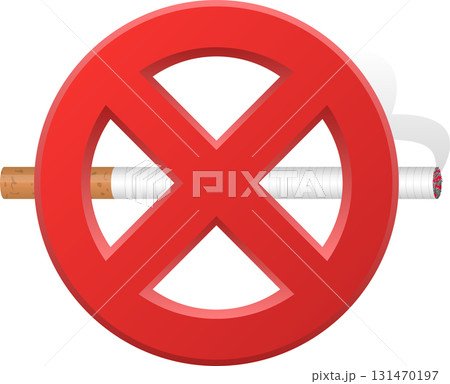 A prominent red prohibition sign placed directly over a cigarette implies a strict no-smoking policy.