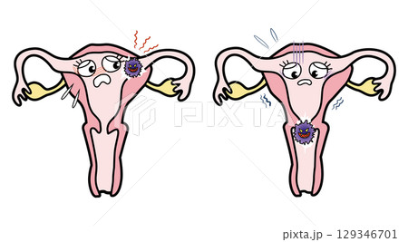子宮内膜症や子宮筋腫ができた子宮のキャラクターイラスト