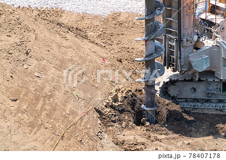建築現場 基礎工事 オーガスクリュー先行掘削