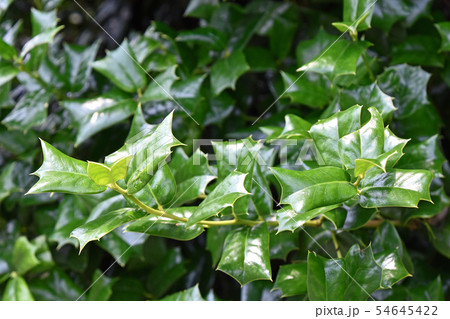五月のフレッシュな青葉の背景素材・シナヒイラギ
