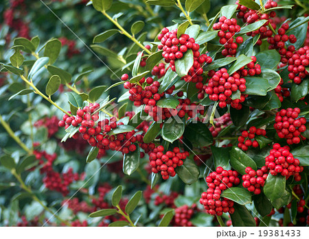 美しいチャイニーズホーリー(クリスマスホーリー)の赤い実