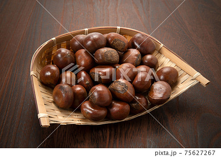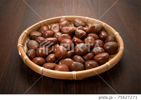 竹かごに入っている甘栗