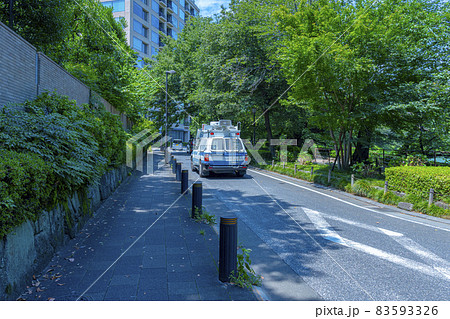 千鳥ケ淵戦没者墓苑「日本国政府が設置した戦没者慰霊施設」周辺を走る機動隊車両