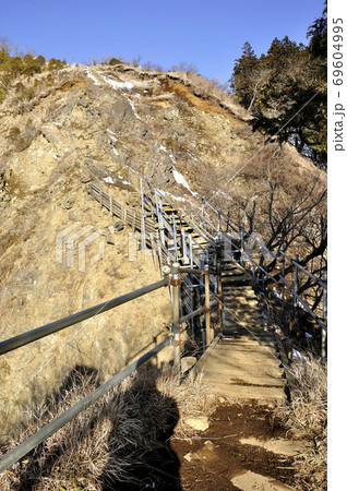 冬の丹沢 丹沢主脈縦走路からの絶景 朝の澄んだ空気の中の富士山