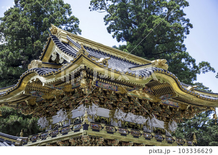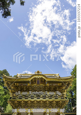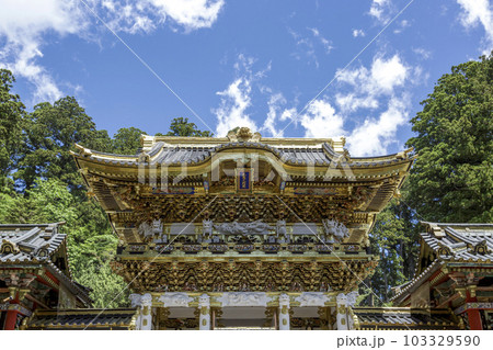 日本を代表する最も美しい東照宮の陽明門と青空と雲