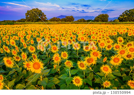 真夏の青空と満開のひまわり畑 座間ひまわりまつりの絶景風景