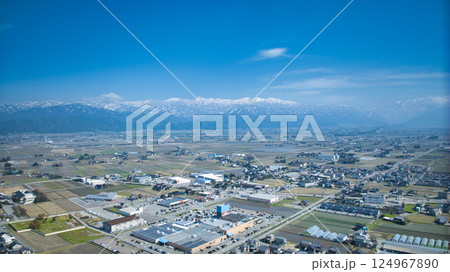 黒部川右岸側河口上空から見た周辺の様子 富山湾や黒部川扇状地