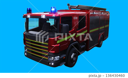 fire engine driving fast. realistic dynamic reflections on the car body.3d rendering.
