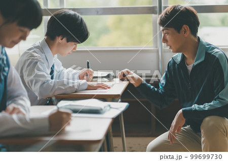 塾で勉強・学校で授業・夏期講習をする小学生・中学生の子供(教育)