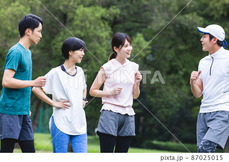 カルチャースクール 水彩画教室に通うシニア男性と女性 若い女性講師