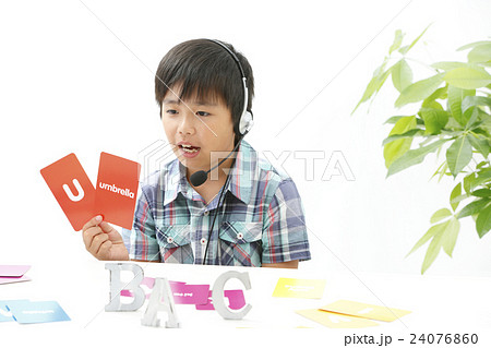 勉強をする少年 英語