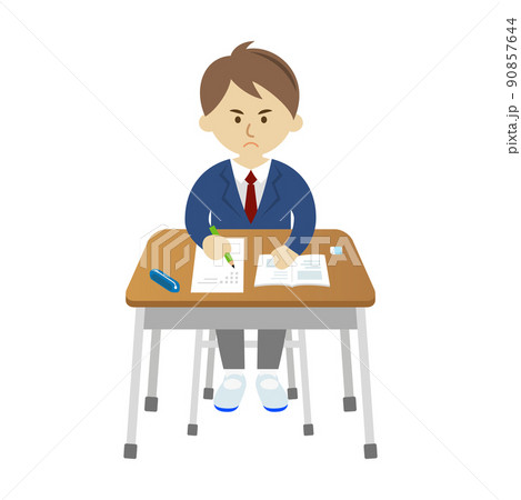 試験勉強を必死に頑張る学生のイラストイメージ