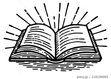 Open book with radiant lines, illustration of education, knowledge, reading, wisdom and storytelling, AI Generative