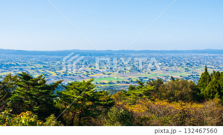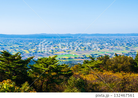 春の広大な砺波平野イメージ|散居村展望台より撮影|富山県砺波市