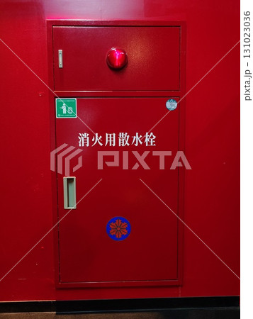 屋内施設の消火器と消火用散水栓 立入禁止表示のある通路