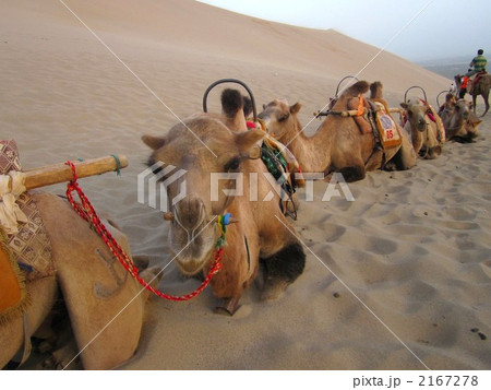 シルクロード 中国 敦煌 鳴沙山 砂漠のラクダ