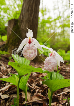 白とピンクのアツモリソウ