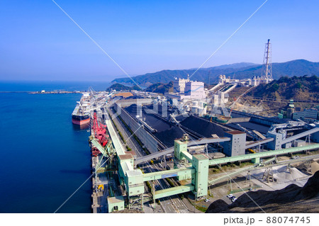 福井県敦賀市金ヶ崎城跡 月見御殿から見るつるがセメントと敦賀火力発電所
