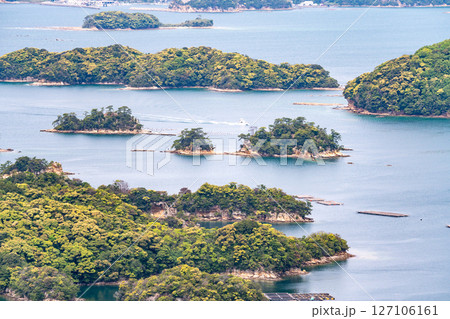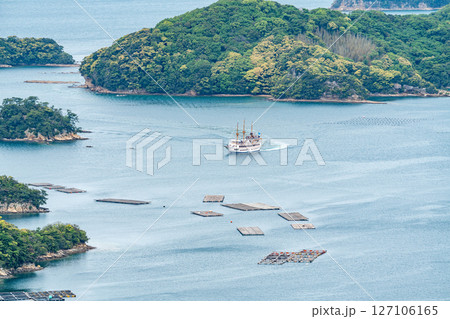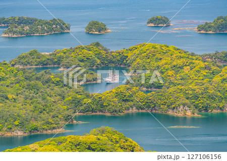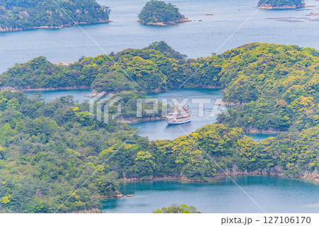 (長崎県)九十九島・佐世保湾に浮かぶ島々 彼方の船舶
