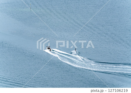 (長崎県)九十九島・佐世保湾に浮かぶ島々 水上スキーを楽しむ人達