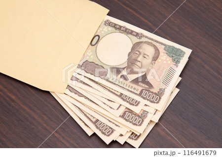 封筒からたくさんの一万円札(新紙幣)