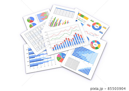 ビジネスデータとプリント資料、様々な種類のビジネスチャート