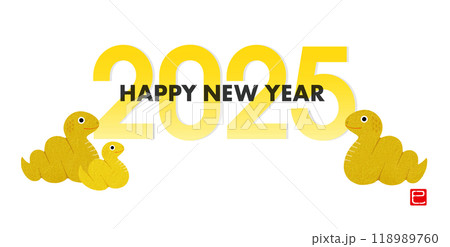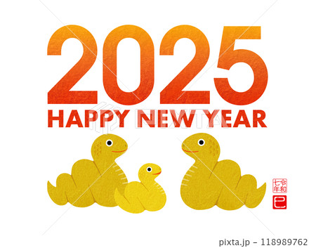 2025年賀状 巳年の干支の親子イラスト 蛇