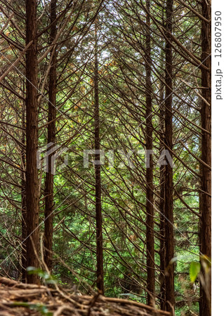 自然 植物 メタセコイア、真直ぐに伸びた幹と木漏れ日に光る若葉が美しい②