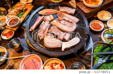 黑豬肉 韓國 食物 料理 鐵板 餐廳 熟的 흑돼지 Pan fried black pork 黒豚