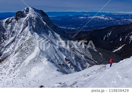 厳冬の八ヶ岳・赤岳へ向かう登山者