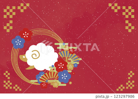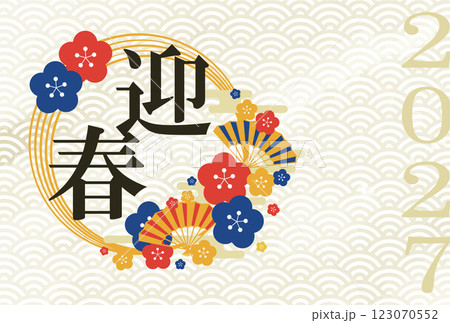 未年を祝うお祝いの年賀状テンプレートイラスト 和風 2027年