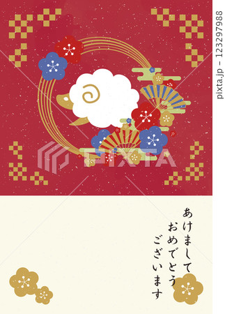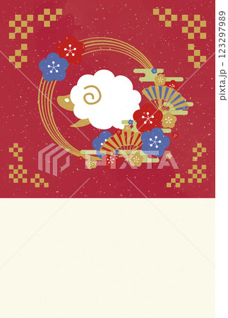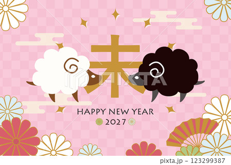 未年を祝うお祝いの年賀状テンプレートイラスト 2027年