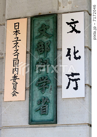 文部科学省、スポーツ庁、文化庁の庁舎銘板 旧文部省庁舎入り口 斜めの画角