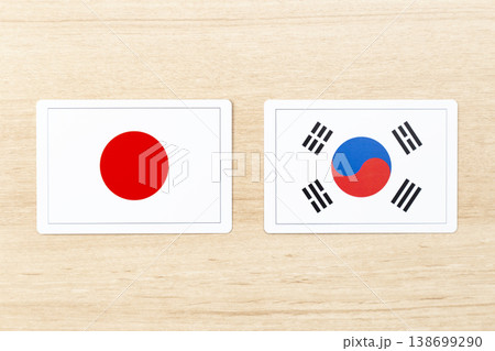 机に置かれた日本と韓国の国旗