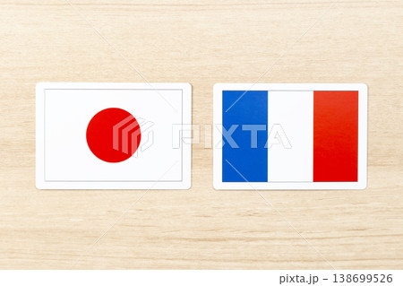 机に置かれた日本とフランスの国旗