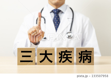 「三大疾病」と書かれたブロックと医師