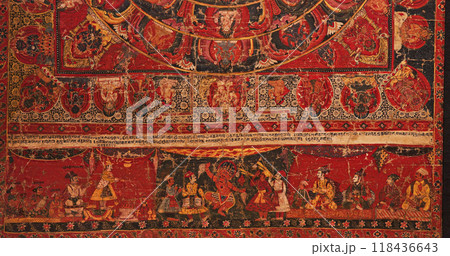 Close-up view on Vishnu With Shridevi And Garuda. centre of mandala is Vishnu as para or Supreme deity, painted white as described in Panchratra Samhita. He is accompanied by his mount Garuda and