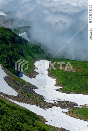 鳥海山・外輪山から見る千蛇谷の雪渓と雲海