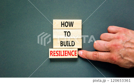 How to build resilience symbol. Concept words How to build resilience on beautiful wooden blocks. Beautiful grey background. Businessman hand. Business and how to build resilience concept. Copy space.