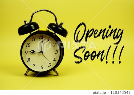 Opening soon symbol. Concept word Opening soon on black chalk background. Beautiful meadow background with bridge. Business and Opening soon concept. Copy space