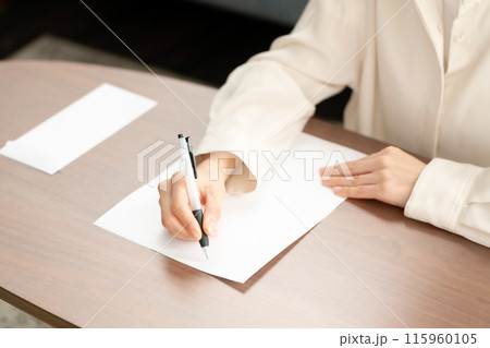 手紙を書く女性 手元