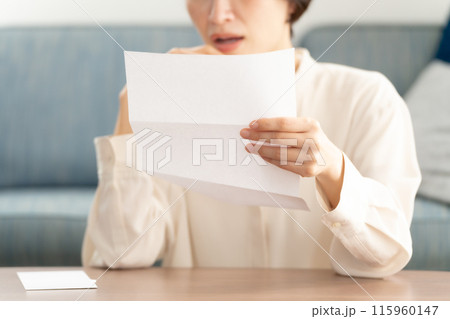 手紙を読んで泣く女性