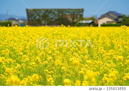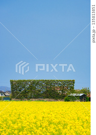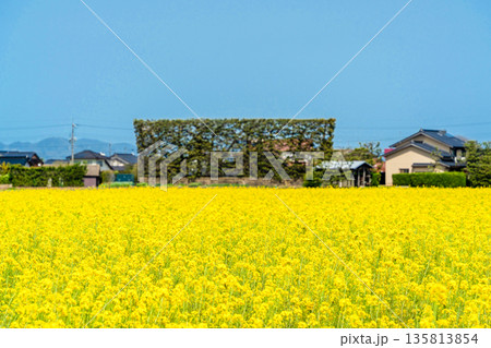 〈島根県〉出雲平野の菜の花畑と築地松