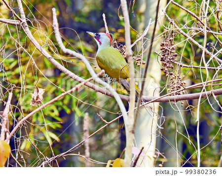 口笛のような声で鳴く日本固有種の野鳥キツツキ目のアオゲラ
