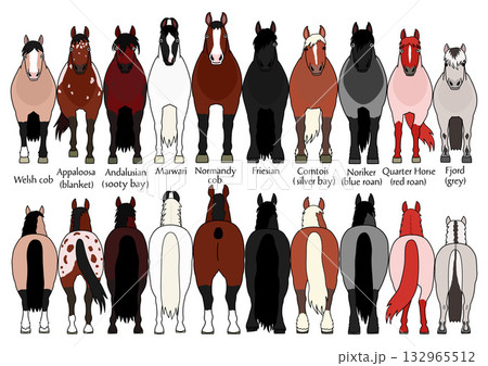 いろいろな種類の馬の前後のセット3、カートゥーン