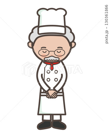 頭を下げて謝るベテラン男性シェフの全身イラスト