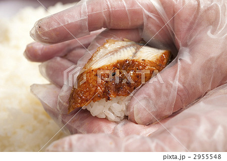 Chef Preparing Sushi with Gloves in a Professional Kitchen Setup