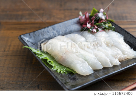 美味しそうなフグの刺身盛り(箸上げ)